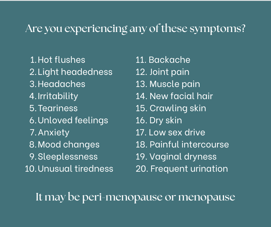 If you would like to seek further information about these symptoms or learn more about assessment options, you can contact Menopause & Me:
